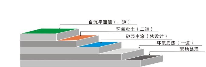 ⑥環氧面漆:溶劑型環氧面漆或止滑面漆滾涂二道,完工后整體地面光亮潔凈,顏色均一,無空鼓;